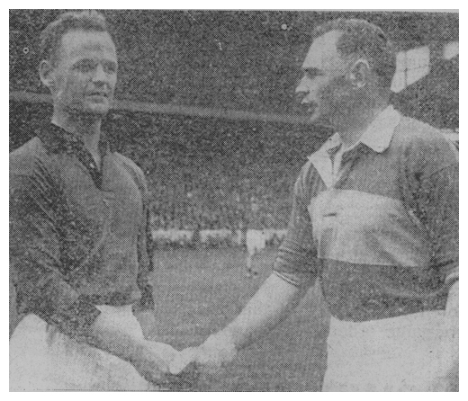 | Captain Kevin Mussen shakes hands with the Kerry captain before the 1960 final |