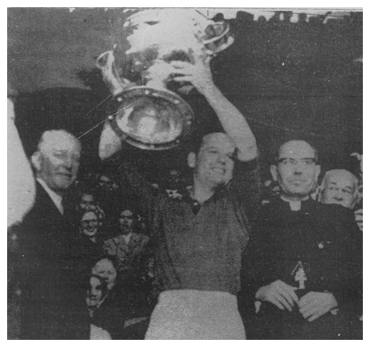 | Captain Kevin Mussen holds aloft the Sam Maguire Cup in 1960 |