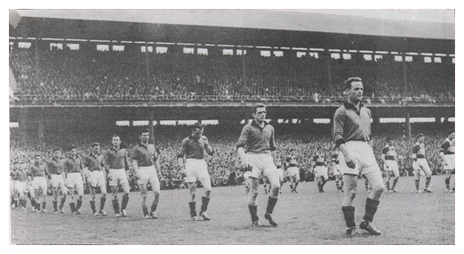 | Down captain Kevin Mussen proudly leads the Mourne side for the 1960 All-Ireland final. |