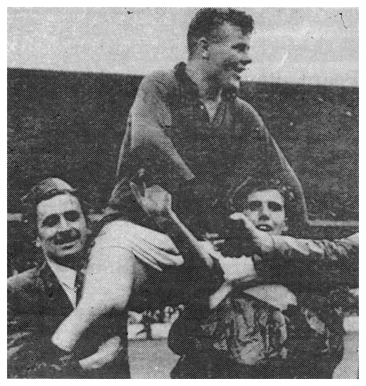 | James McCartan is borne aloft by jubilant fans following Down's first ever National League win, 1960. |